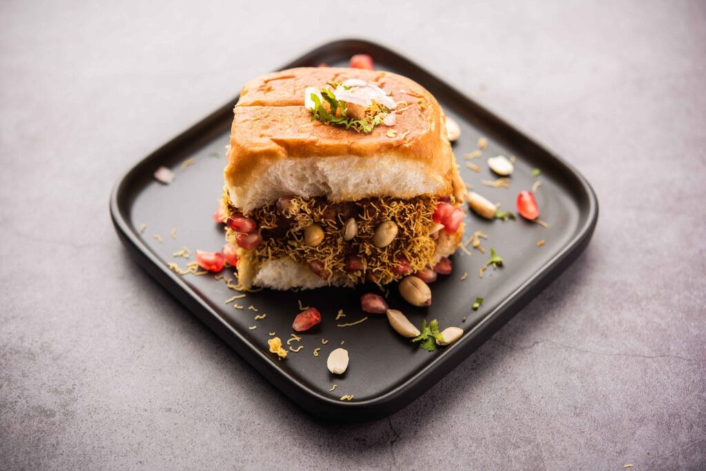 Enjoy the bold, spicy, and tangy flavors of Vada Pav—a crispy potato fritter tucked in a soft bun, topped with chutneys and fried chilies for a perfect fast food bite.
