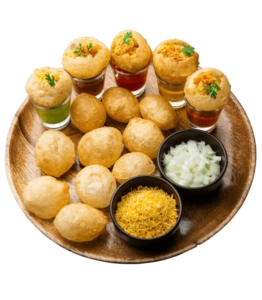 LIVE COUNTER ONLY – A burst of joy in every bite—experience the crisp puris filled with spicy, tangy tamarind water. Dive in and let each puri explode with flavor!